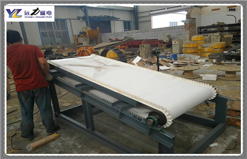 高梯度平板磁选机,采用带式分选结构,在整个工作区域从进料到出料,物料在皮带的带动下,可对物料进行多次磁搅拌,同时在水流的冲洗作用下,把不含磁的尾矿除去,带有磁性的矿物被皮带输送到板选机的脱磁区,从而将带有磁性的矿物通过脱磁装置脱掉,来完成选矿的过程,整机功率小、处理大,磁场强度高,并达到很好的品质,能够获得更大的效益。
